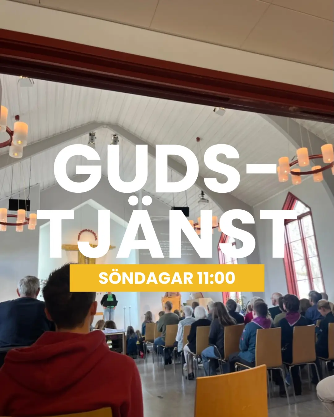 Gudstjänst firas varje söndag klockan 11. Till gudstjänsten är alla välkomna, nya som gamla besökare. I gudstjänsten möts Gud och människa, himmel och jord. Hit får du komma med allt det som hör livet till och låta dig beröras och tilltalas av Gud.